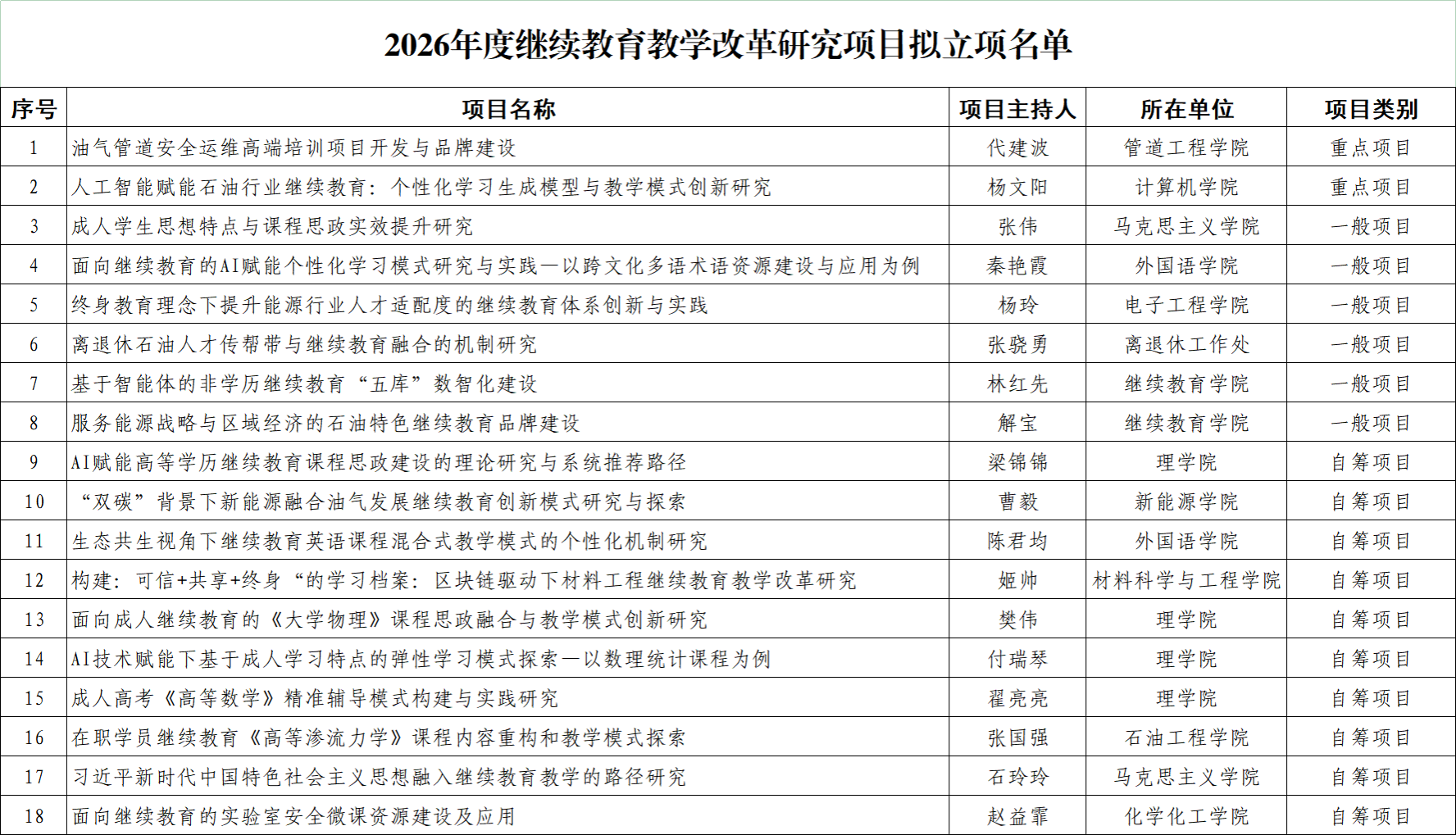 附件:2026年度继续教育教学改革研究项目拟立项名单