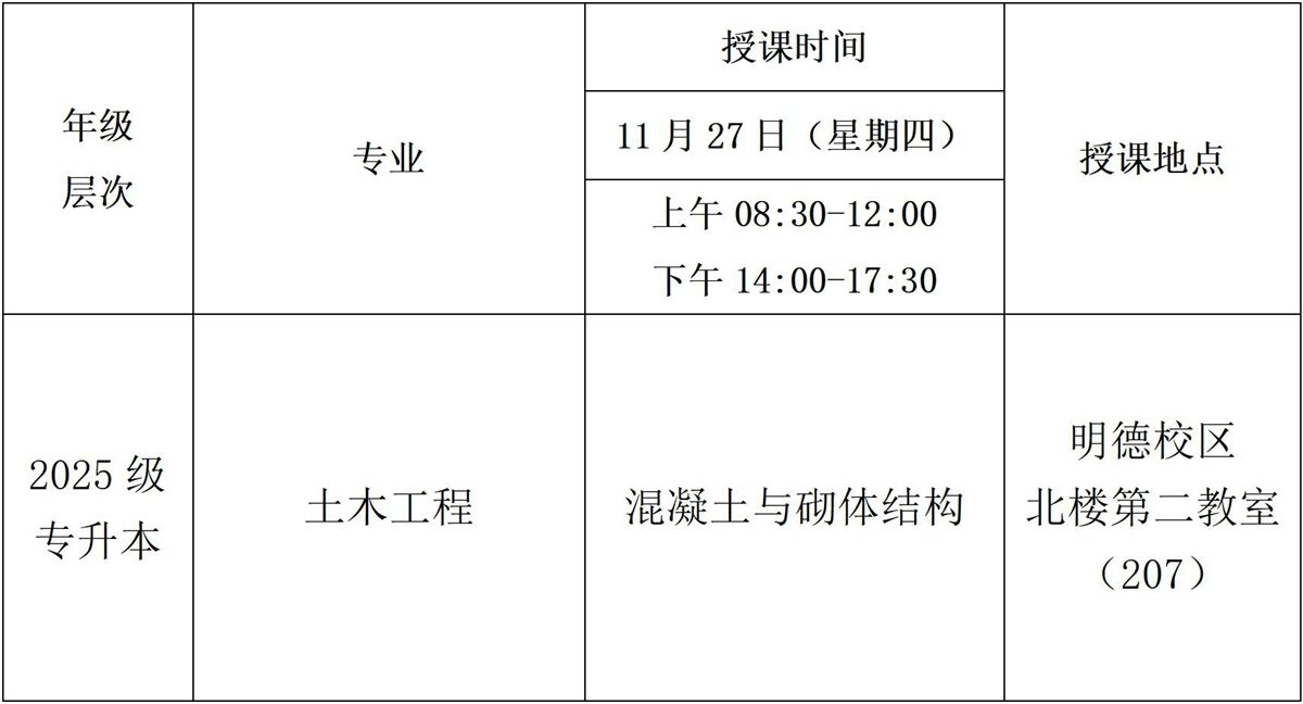 2025年秋季学期第八次(11月27日)线下教学课程表