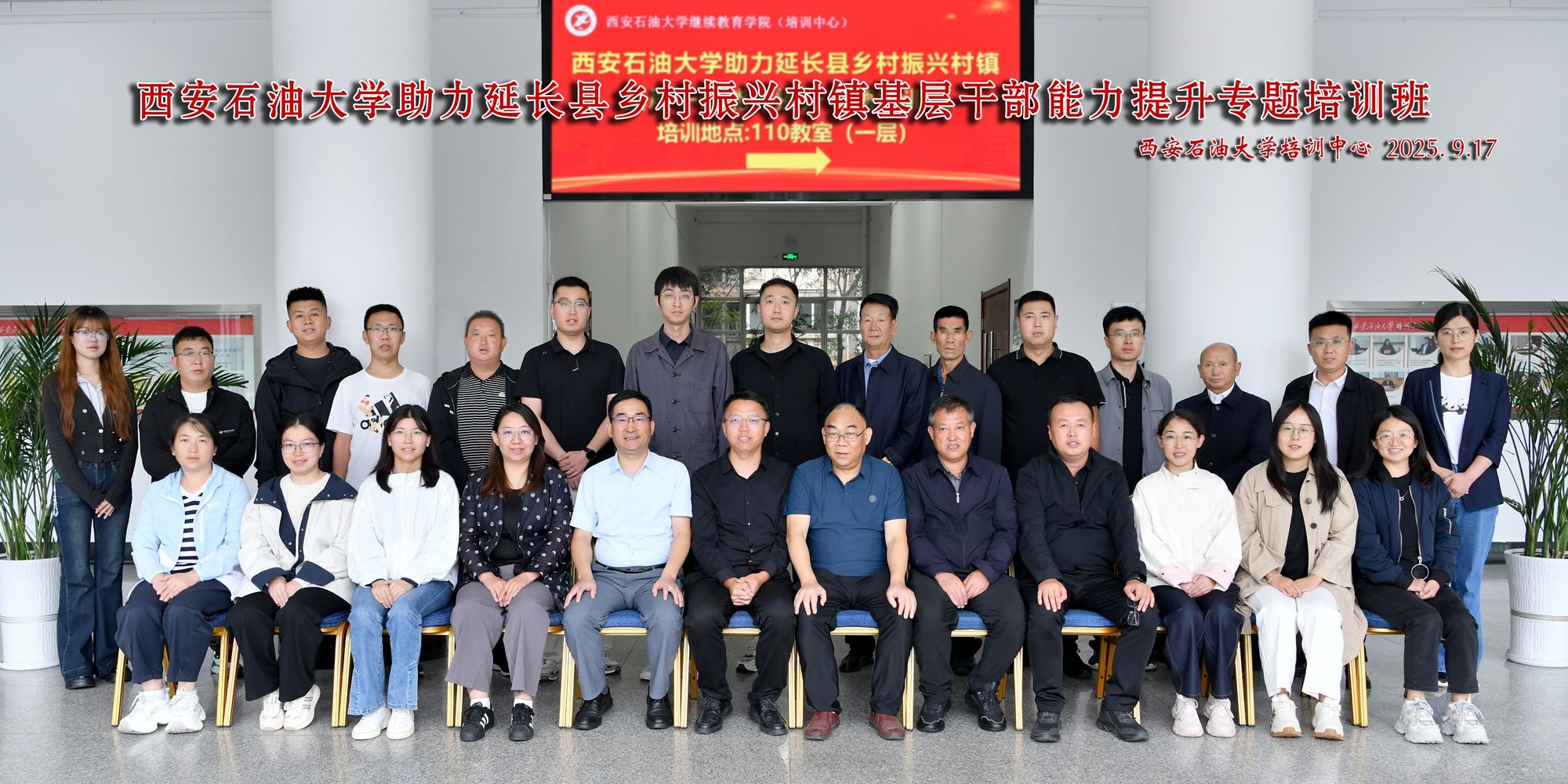 9月17日下午,西安石油大学助力延长县乡村振兴村镇基层干部能力提升专题培训班在我校明德校区顺利开班,延长县农业农村局主任科员郭少华、我校校工会主席吴民生、继续教育学院副院长丁昌峰出席开班仪式,来自延长县各镇村干部26人参加培训。