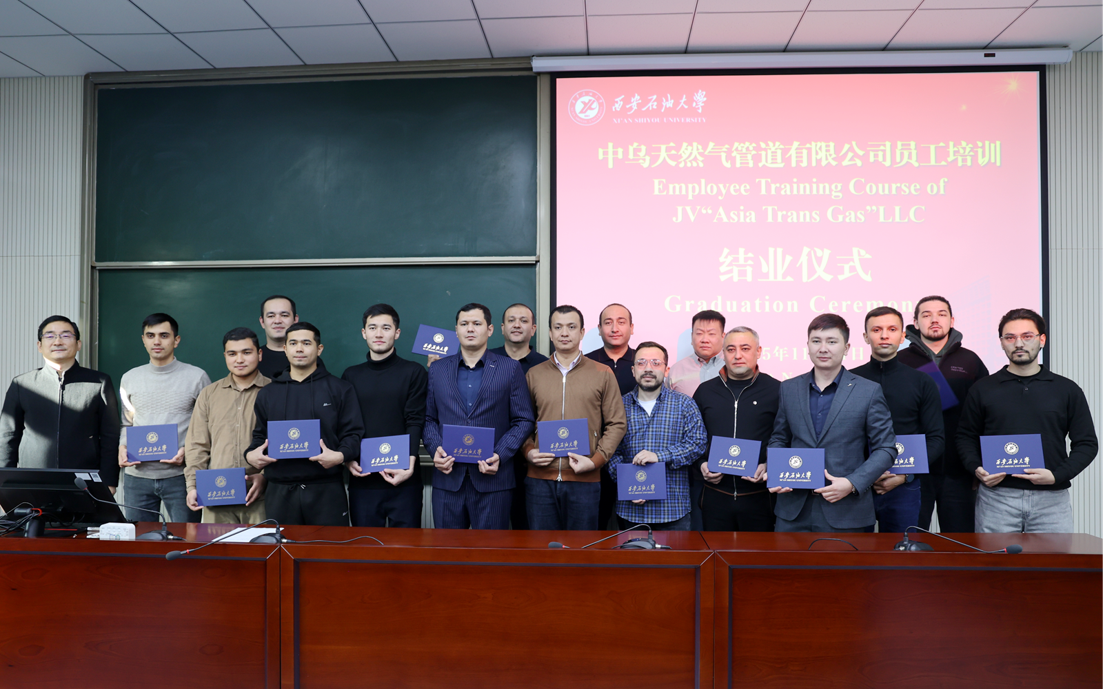 本期培训的顺利结业,标志着我校与中乌天然气管道公司培训项目取得阶段性成果。未来,学院将继续以员工培训为切入点,进一步深化人才培养与产教融合实践,为促进中乌高等教育与科技创新深度融合、推动“一带一路” 高质量发展贡献“西石大”智慧与力量。