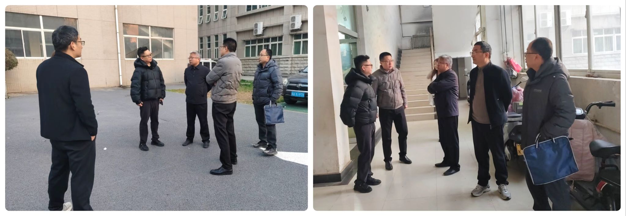 1月22日下午,副校长张骁勇带队到明德校区开展慰问活动,并现场调研指导假期工作,校工会负责人陪同慰问。并邀请我校2010级校友、中明建投集团常务副总裁董斌一行现场考察餐厅改造提升工作并对接洽谈。