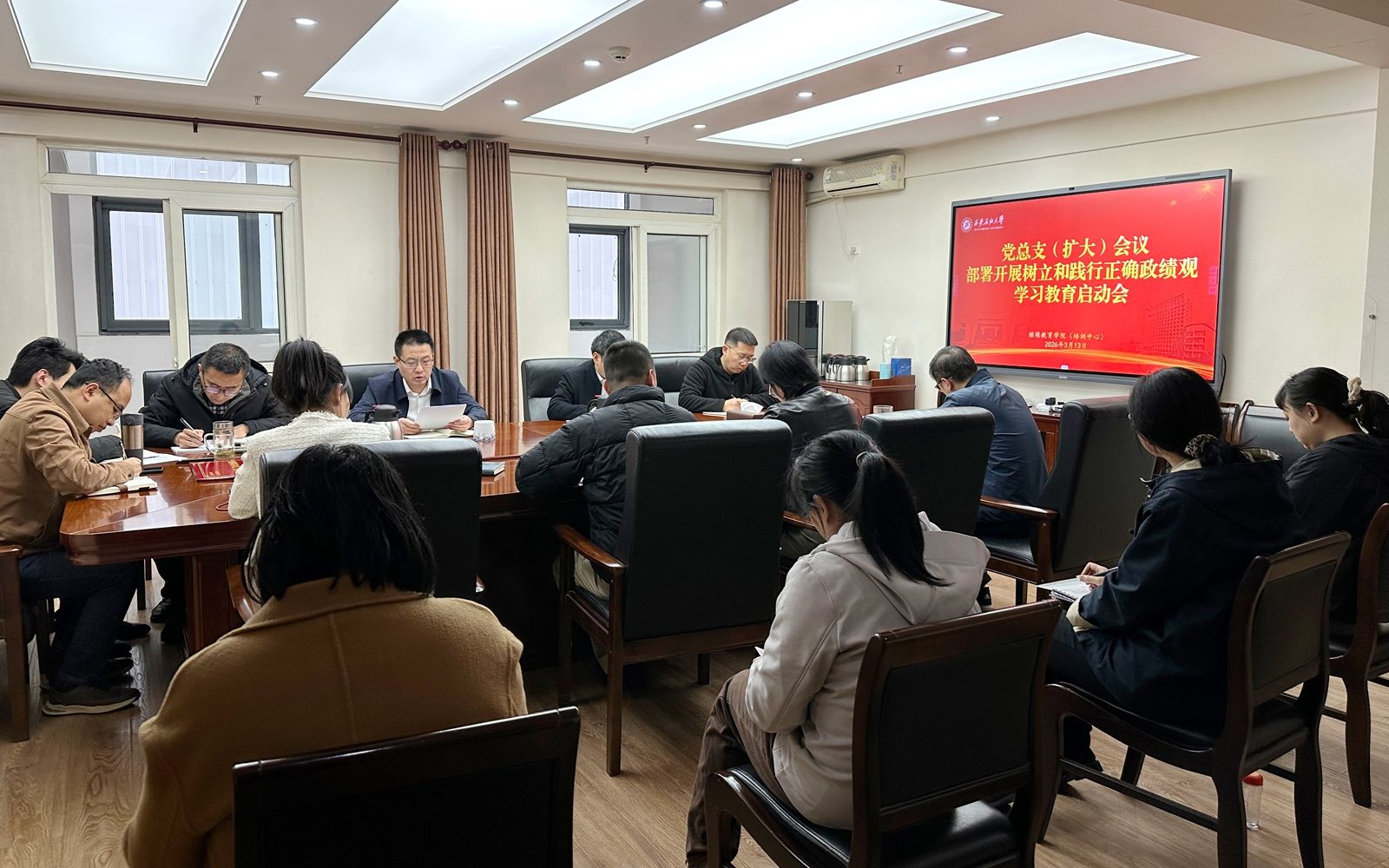 为深入学习贯彻习近平总书记关于树立和践行正确政绩观的重要论述,全面落实学校党委工作部署,3月13日,继续教育学院召开党总支会议,对全院树立和践行正确政绩观学习教育进行动员部署、压实责任、明确要求。院长林红先主持会议,学院全体党员参加会议。